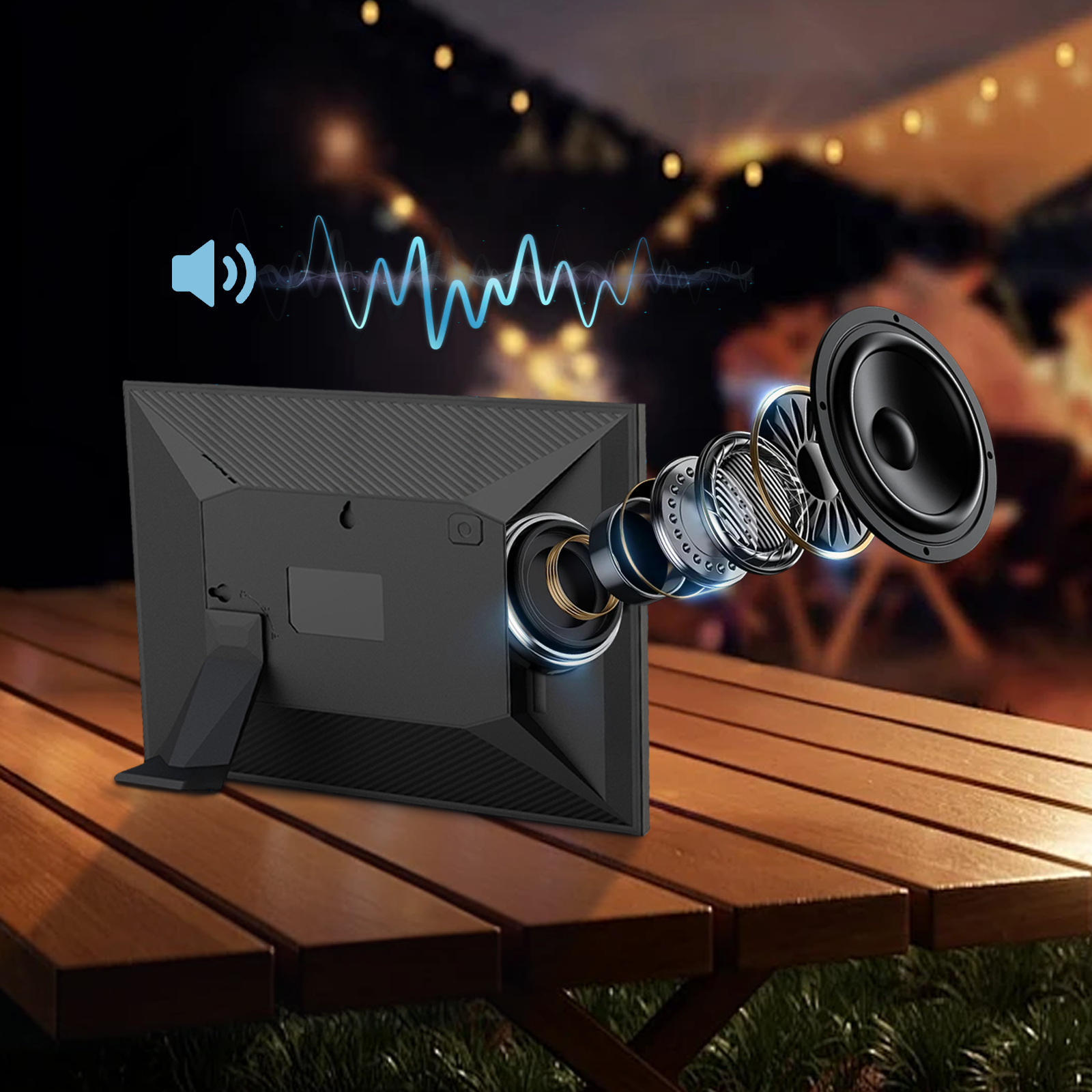 De innebygde høykvalitetshøyttalerne i Vassco Smart Digital Photo Frame leverer en klar og fyldig lydopplevelse. De er sømløst integrert med videoavspillingsfunksjonen og gjengir tydelig hver detalj – fra dialog og bakgrunnsmusikk til omgivende lyder – for å skape en komplett audiovisuell fest.
