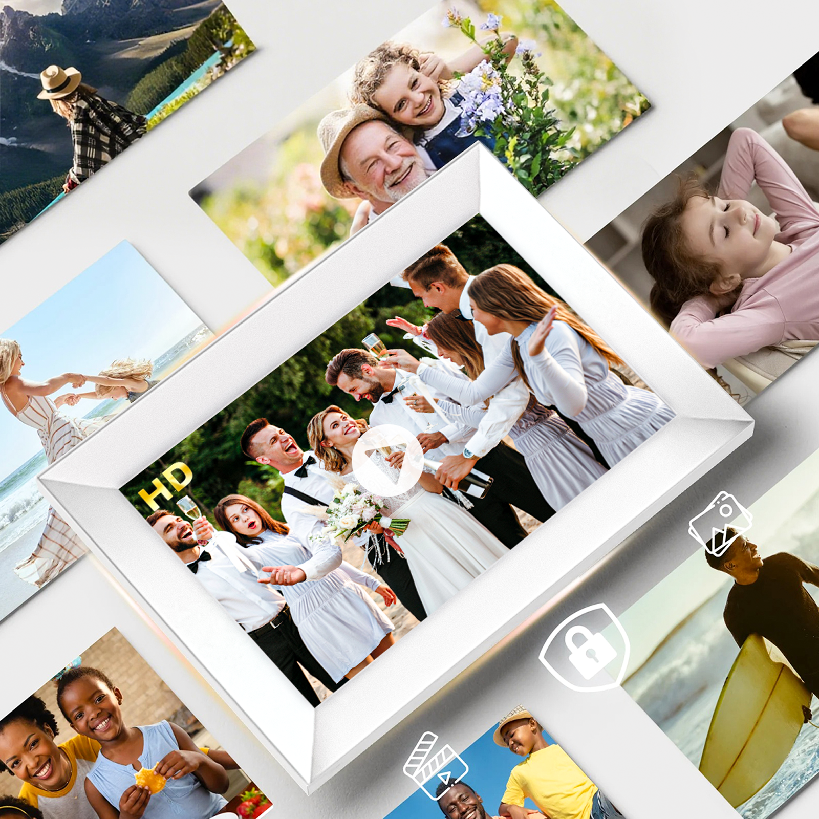 Gjør lysbildefremvisningene dine mer dynamiske. Vassco Smart Digital Photo Frame støtter HD-videoavspilling, og overgangen mellom bilder og videoer skjer automatisk, jevnt og sømløst. Det er den perfekte blandingen av et bildes statiske skjønnhet og en videos dynamiske energi, noe som gir deg en komplett audiovisuell fest.