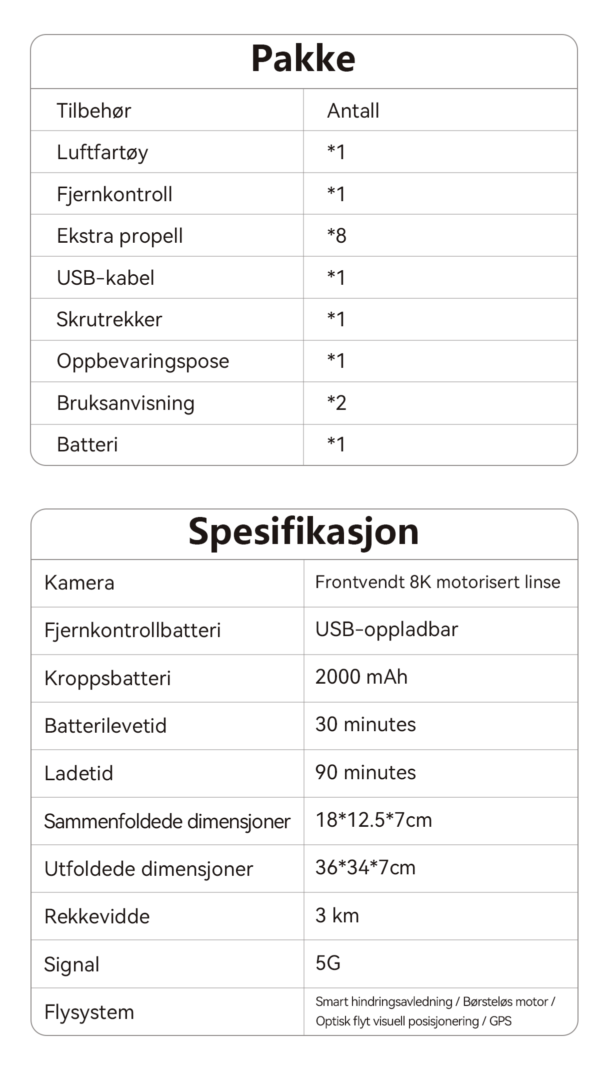 - 4-Veis Unngåelse Av Hindringer – Avansert sikkerhetssystem for bekymringsfrie flyturer og kollisjonsforebygging.