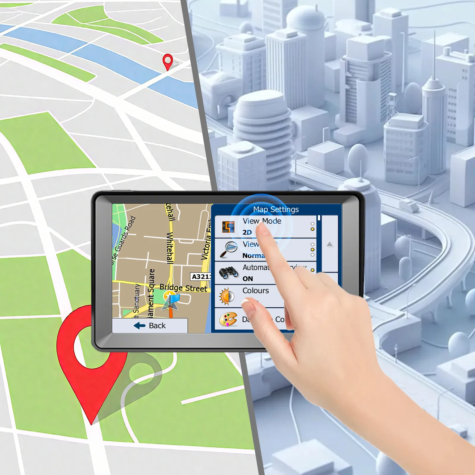 Bytt fritt mellom 2D- og 3D-kartvisninger for å velge den mest komfortable visningen for dine personlige preferanser og gjeldende veiforhold. Enten du trenger de detaljerte bildene i 3D eller den raske ruteoversikten i 2D, gir et enkelt trykk deg en personlig reise hver gang.